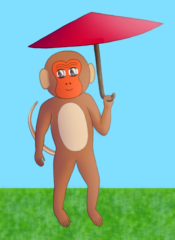 「お散歩♪」 2004年の年賀イラスト第五弾。 日傘をさしてるお猿さんです♪ |