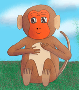 「おすわりもんきちくん」 2004年の年賀イラスト第三弾。 草原でおすわりしているお猿さんです♪ |
