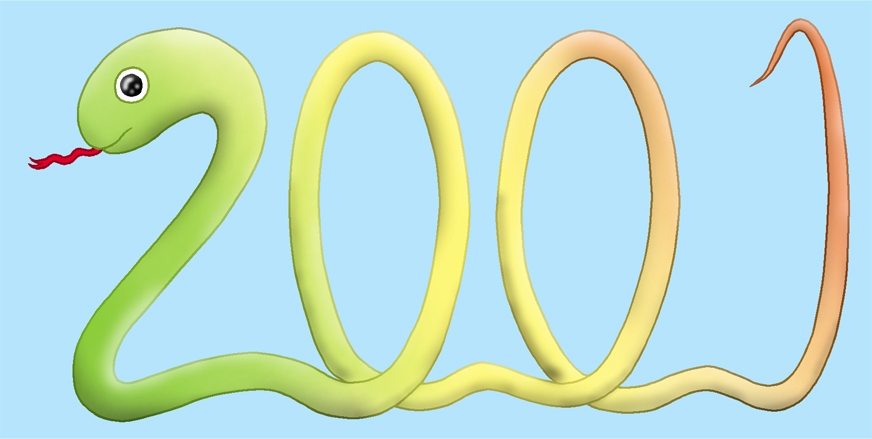 「2001☆」 2001年なへびさんです。 2001年の年賀向けイラスト第七弾。 |