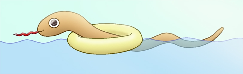 「うきわ♪」 このへびさんカナヅチみたいです。 だから泳ぐ時はうきわしちゃってます(^^; 2001年の年賀向けイラスト第五弾。 |