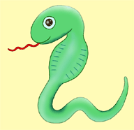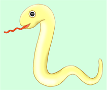 「とぐろ♪」 定番のとぐろ巻いてる蛇さんです。 2001年の年賀向けイラスト第四弾。 |