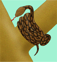 「樹上のニシキヘビ」 樹に巻きついてるニシキヘビです。 2001年の年賀向けイラスト第八弾。 |