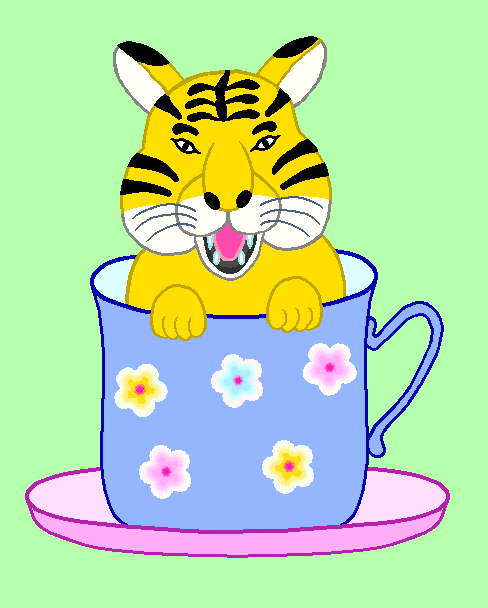 「ティーカップの中のトラ」 1998年の年賀向けイラスト第五弾。 (1998年の一般向け年賀状に使用) |