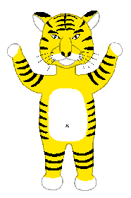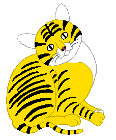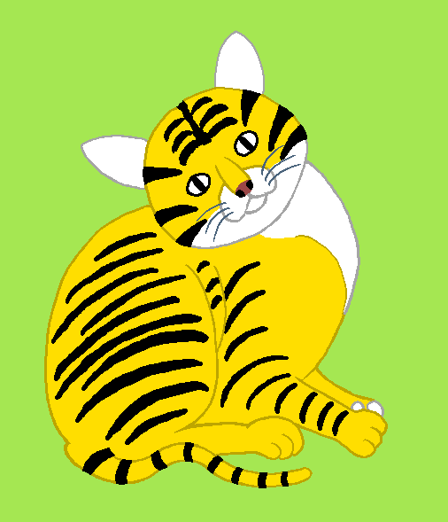 「虎猫」 とってもトラっぽい猫です。(^^); 額の”王”の模様は百獣の王の証。 こんなのがホントにいたらコワいだろな。 1998年の年賀向けイラスト第四弾。 |